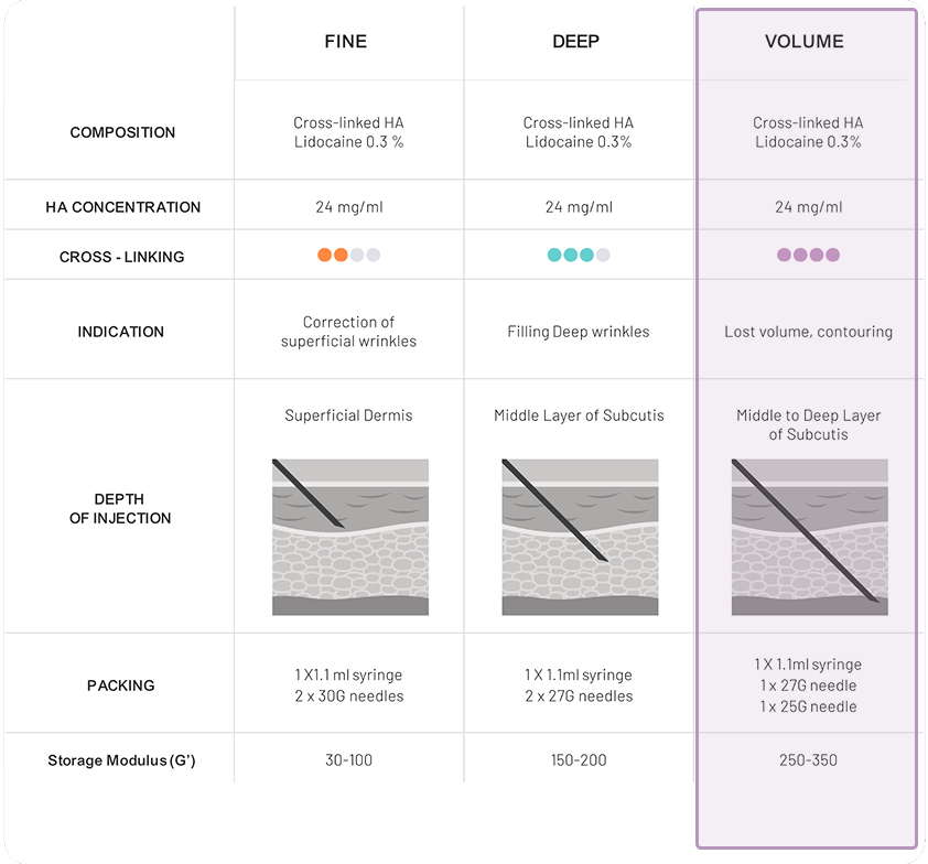 Used to treat moderate to deep wrinkles, including nasolabial folds, and for enhancing the face, chin, and lips.
