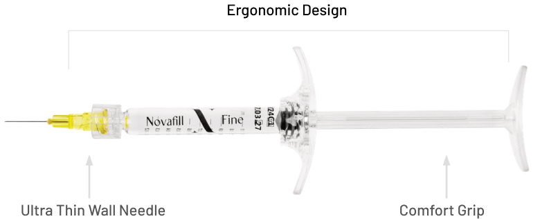 The NOVAFILL filler syringes feature an ergonomic design, ensuring even pressure distribution during